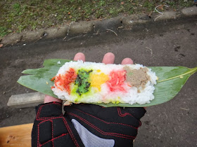 そして地元のお母さん方が作ってくれた笹ずしを温かい味噌汁と一緒に堪能します。